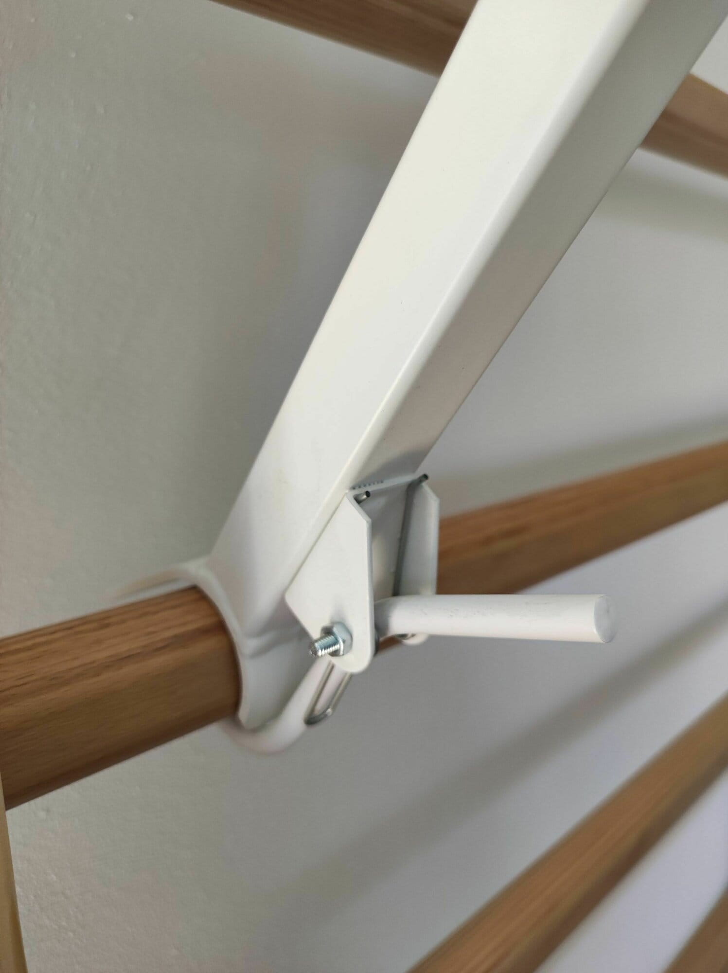 Drążek gimnastyczny składany może być zawieszony na drabince gimnastycznej, tworząc idealny zestaw do ćwiczeń dla dzieci i dorosłych. Wykonany jest z drewna bukowego, ma ruchome ramiona umożliwiające regulację wysokości i odległości drążka od drabiny (długość ramion 1000 mm oraz 740 mm). Maksymalne oddalenie drążka od szczebla drabinki gimnastycznej przy poziomym ustawieniu drążka w stosunku do szczebla na którym zamocowane jest ramię górne wynosi około 900 mm. Maksymalne statyczne obciążenie 120 kg. Wykonany jest z klejonego drewna bukowego.