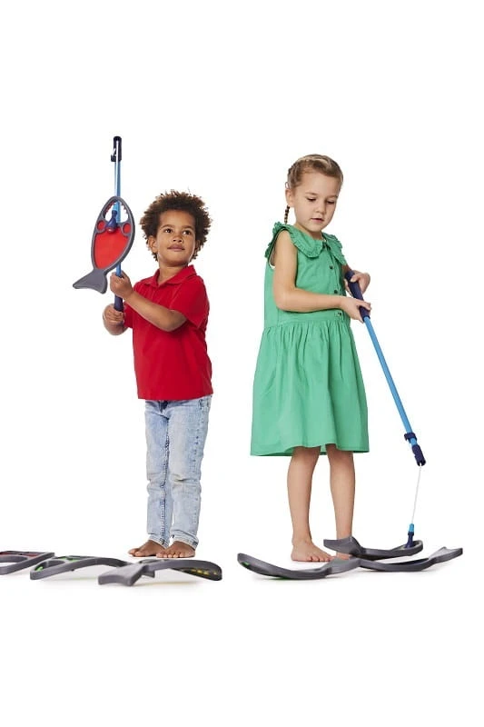 Te jaskrawo ubarwione ryby zostały sprytnie zaprojektowane tak, aby można je było zahaczyć w pysku za pomocą haczyka na wędce (art. 2175). Ta zabawna gra wymaga umiejętności motorycznych i koncentracji umysłowej, a także zachęca dzieci do planowania przyszłości i rozwiązywania problemów. Dzieci mogą także ze sobą konkurować, przyczyniając się do wzrostu świadomości społecznej i nauki języków. Używanie wędki do podnoszenia ryby pozwala dzieciom doskonalić funkcje percepcyjne i poznawcze
