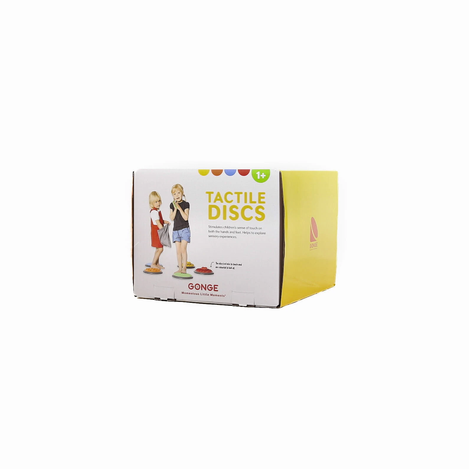 Dzięki zastosowaniu wysokiej jakości materiału oraz odpowiedniemu wyprofilowaniu powierzchni dysków możliwa jest stymulacja zmysłu dotyku, zarówno w obrębie stóp, jak i rąk. Każdy z kształtów można odnaleźć na dużym i małym dysku, dzięki czemu zestaw sprawdzi się w zabawach polegających na odnajdywaniu tożsamych par. Dyski sensoryczne Gonge Tactile Discs to produkt bardzo uniwersalny, który dzięki swoim właściwościom znajdzie zastosowanie podczas ćwiczeń i zabawy w domu, przedszkolu czy placówce rehabilitacyjnej.
