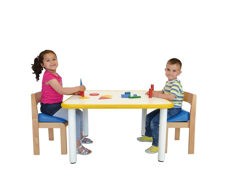 Mniejsza wersja dmuchanego klina do siedzenia Movin Sit zaprojektowana z myślą o dzieciach, dzięki czemu idealnie pasuje do małych krzeseł w przedszkolach czy szkołach podstawowych. Klin "wymusza" aktywne siedzenie, dzięki czemu pomaga dzieciom utrzymać prawidłową postawę ciała oraz zwiększyć ich poziom skupienia w trakcie nauki. Poprzez regulację stopnia napompowania istnieje możliwość dostosowania stabilności produktu do własnych potrzeb.