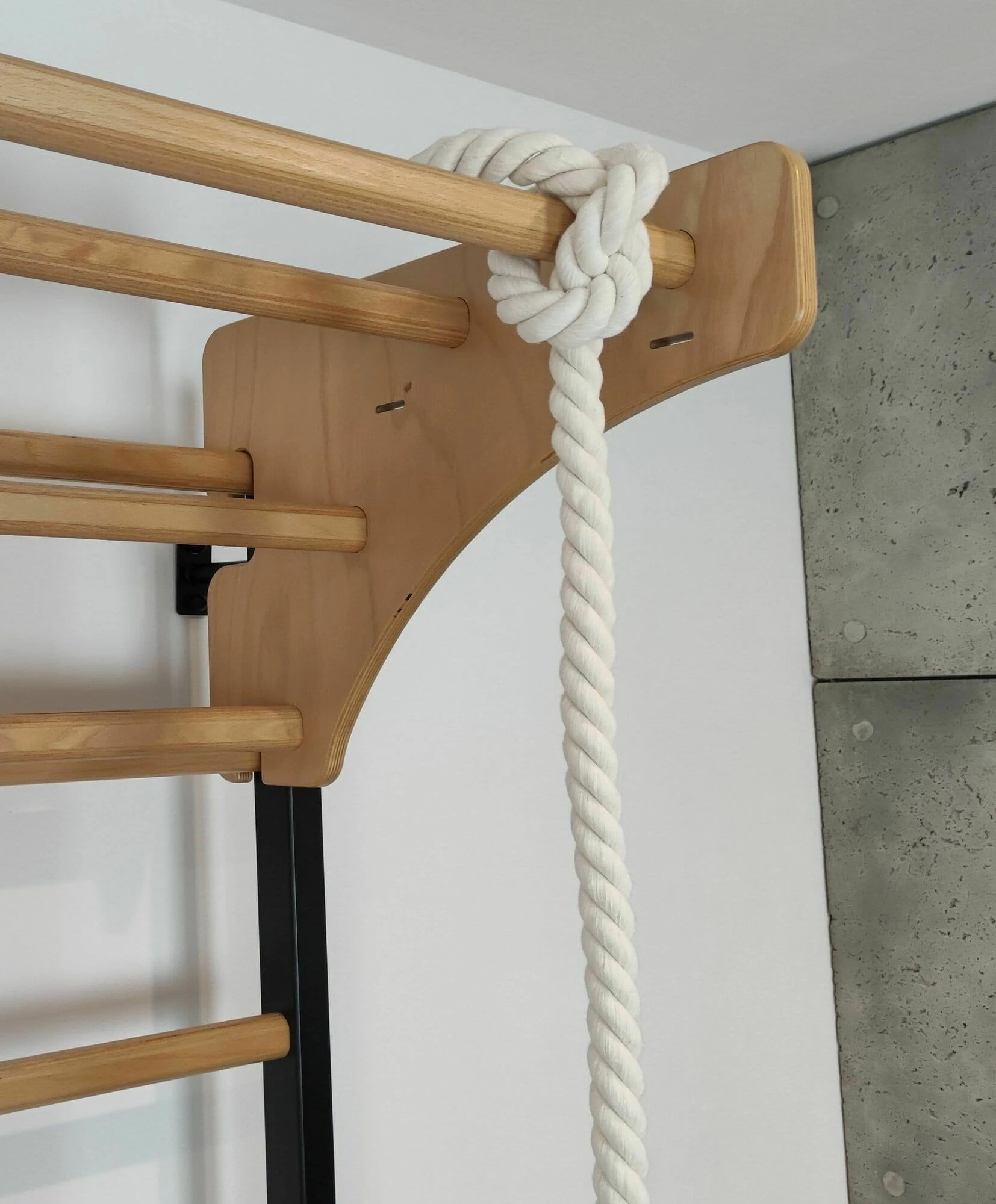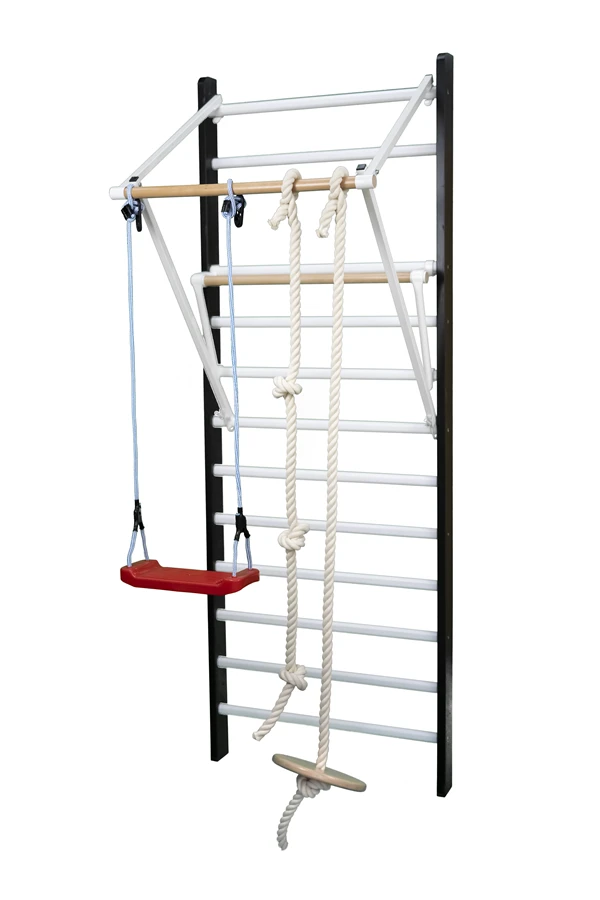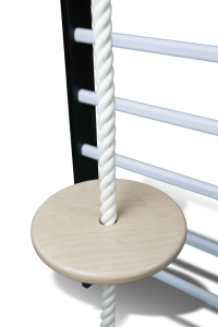 Okrągła drewniana huśtawka zawieszana na drabince gimnastycznej wyposażonej w drążek, to idealna atrakcja dla dzieci. Rozwija umiejętności ruchowe i urozmaica zabawę, dzieci przy podciąganiu wzmacniają mięśnie i ćwiczą koordynację ruchową.