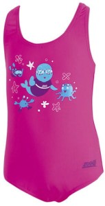 Kostium Miss Zoggy to strój przeznaczony dla dziewczynek w wieku od 1 do 6 lat. Różowa kolorystyka z pewnością zachwyci młode amatorki pływania oraz pozwoli na oswojenie się z wodą. Dzięki atrakcyjnej grafice kostium pozwoli czerpać radość z przebywania w wodzie. Strój został zaprojektowany w taki sposób, aby dobrze przylegał do ciała, a jednocześnie nie krępował ruchów. Z tyłu znajduje się wycięcie w kształcie koła zapewniające swobodę ruchów.