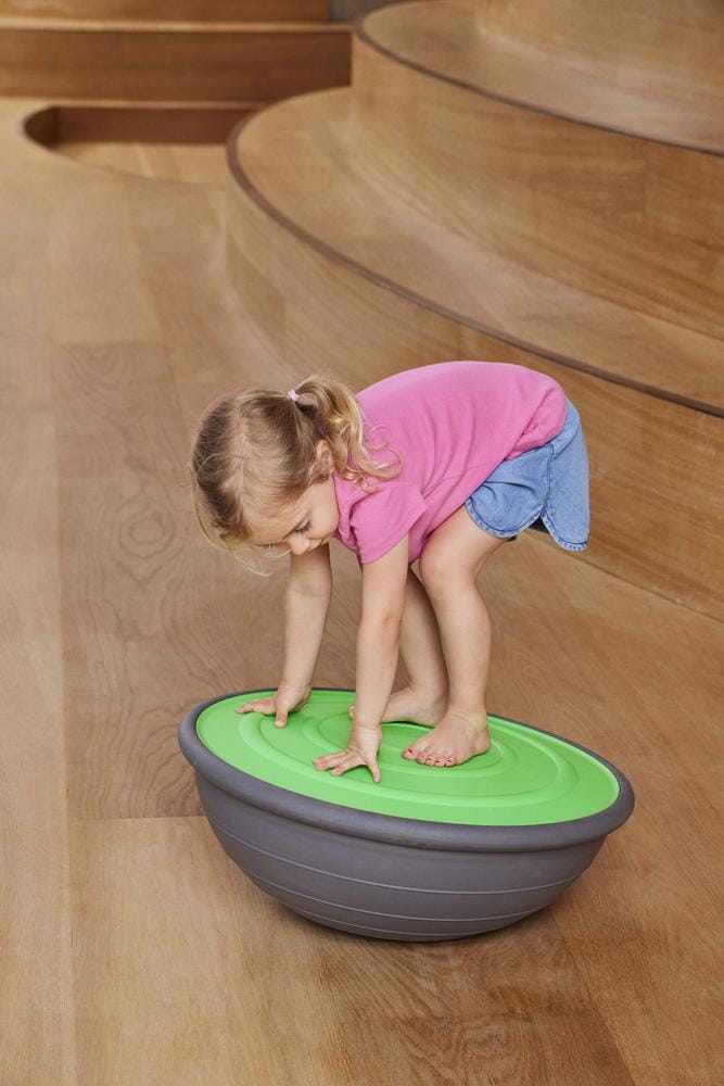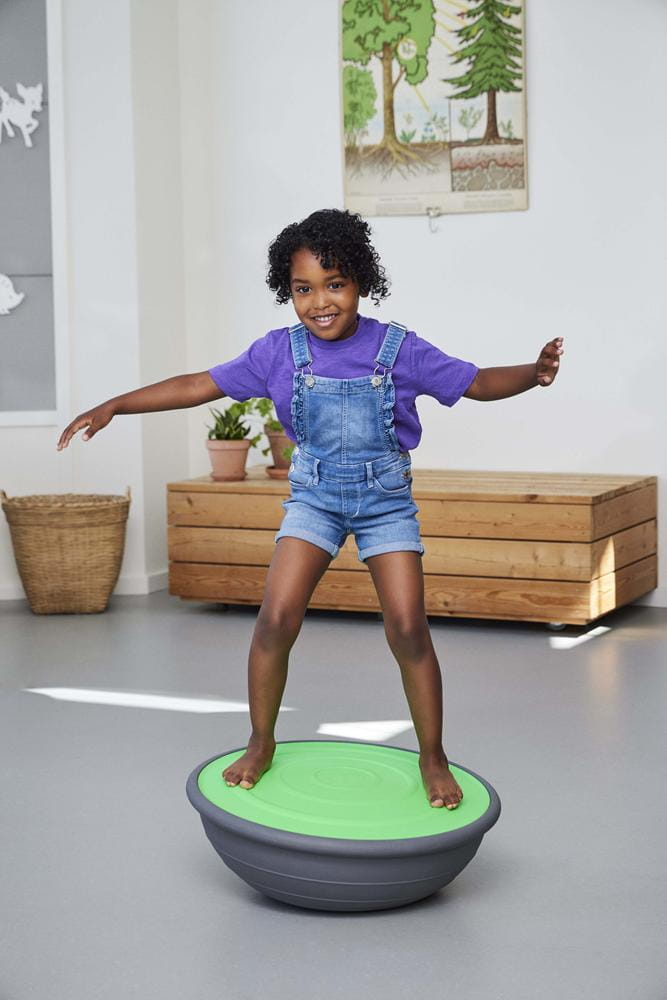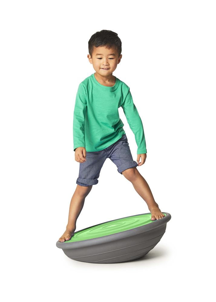 Niezwykle uniwersalny produkt, który może być wykorzystywany przez użytkowników z różnych grup wiekowych - zarówno do treningu, jak i zabawy. Duży rozmiar sprawia, że dzieci mogą na nim siedzieć, stać, a nawet leżeć. Gwarantuje to doskonałą zabawę w trakcie różnego rodzaju zajęć ruchowych. Gigantyczny powietrzny dysk wyposażony został w twardą platformę znajdującą się na miękkiej, pompowanej podstawie, dzięki czemu idealnie sprawdzi się podczas ćwiczeń kontroli motorycznej oraz wzmacniających mięśnie kończyn dolnych i tułowia. Twarda powierzchnia zapewnia stabilne podparcie dla stóp i dłoni, gwarantując osobie ćwiczącej poczucie komfortu i bezpieczeństwa, a dzięki dmuchanej podstawie możliwe jest uzyskanie odpowiedniego poziomu trudności. Produkt może być pompowany pompką igłową, co pozwala na dostosowanie stopnia napompowania do możliwości użytkownika - zwiększeni ciśnienia spowoduje szybsze poruszanie się dysku, co sprawi, że utrzymanie równowagi będzie trudniejsze.