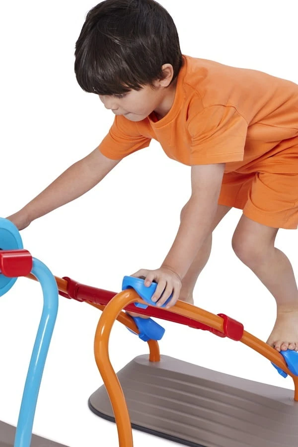 Gumowe uchwyty do toru Mini Parkour, zapewniają uzupełnienie toru o małe platformy na dłonie, kolana lub stopy. Idealnie sprawdzą się do tworzenia nowych, wymagających tras dla dzieci. Uchwyty posiadają bezpieczny i łatwy w użyciu mechanizm blokujący, dzięki czemu dzieci mogą samodzielnie przyczepić je do innych elementów toru.