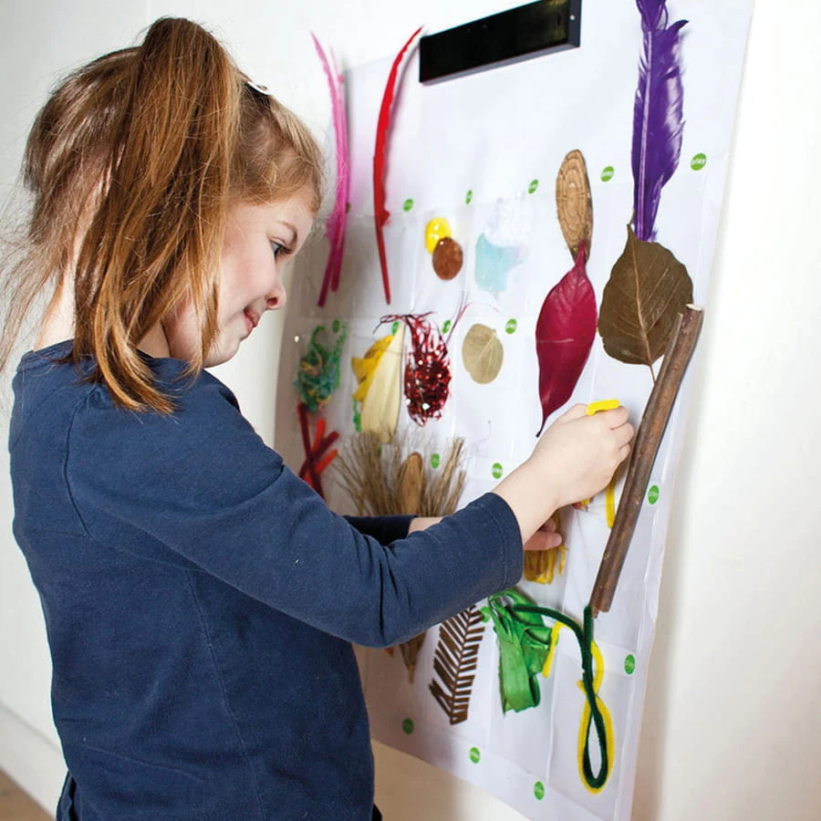 Praktyczne narzędzie dydaktyczne wspierające różnorodne aktywności edukacyjne. Tablica wyposażona jest w 30 przezroczystych kieszonek, z których każda posiada 10-sekundową funkcję nagrywania. Uczniowie mogą umieszczać w nich materiały dydaktyczne i jednocześnie nagrywać swoje obserwacje, łącząc naukę wizualną i słuchową w atrakcyjny sposób. To dynamiczne rozwiązanie wspiera rozwój kluczowych umiejętności komunikacyjnych.