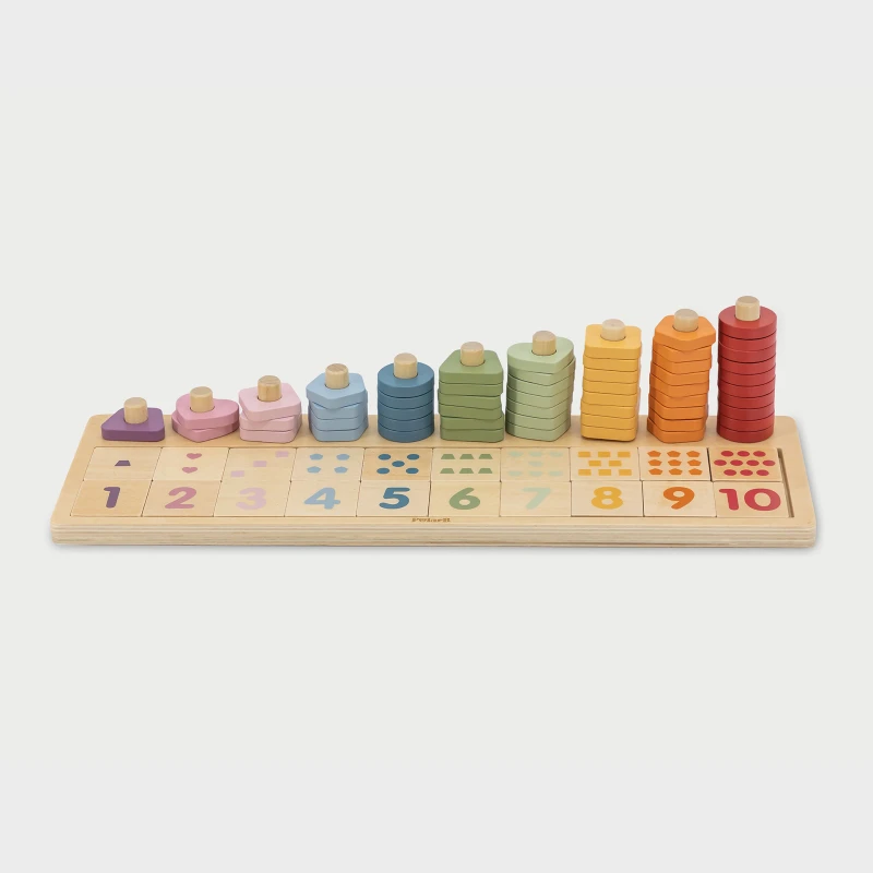 Poznaj świat liczb w zabawie! Ten uroczy drewniany zestaw do liczenia zachęca dzieci do nauki poprzez dopasowywanie, sortowanie i tworzenie wzorów.