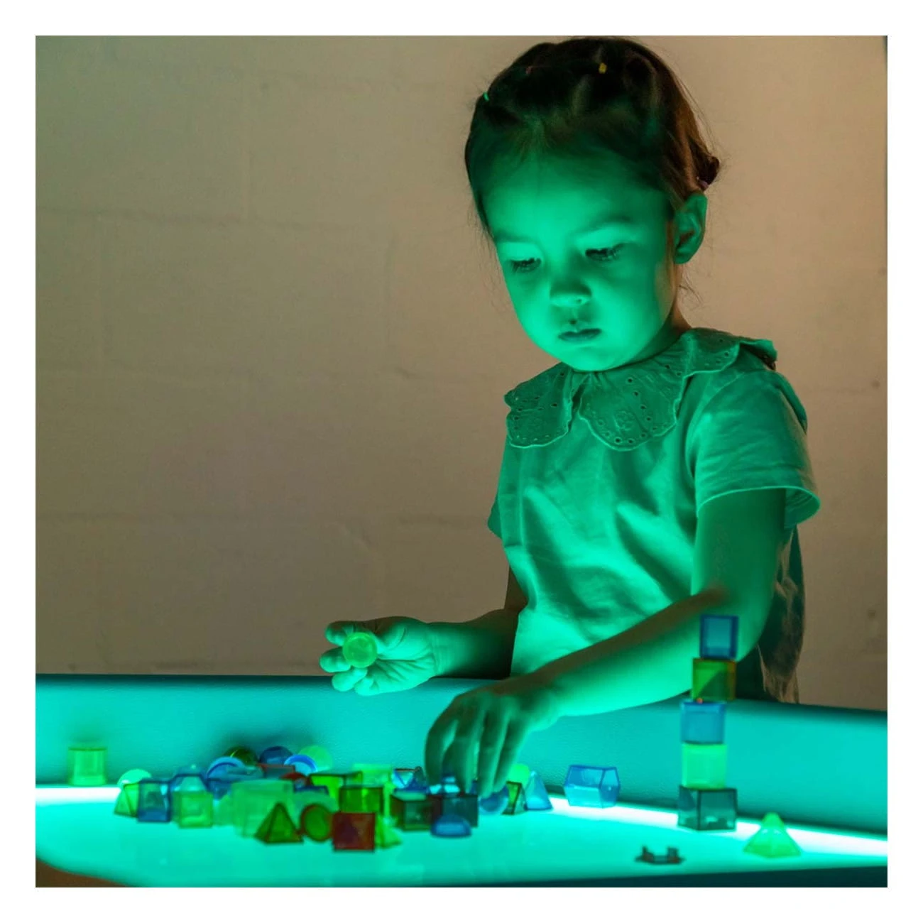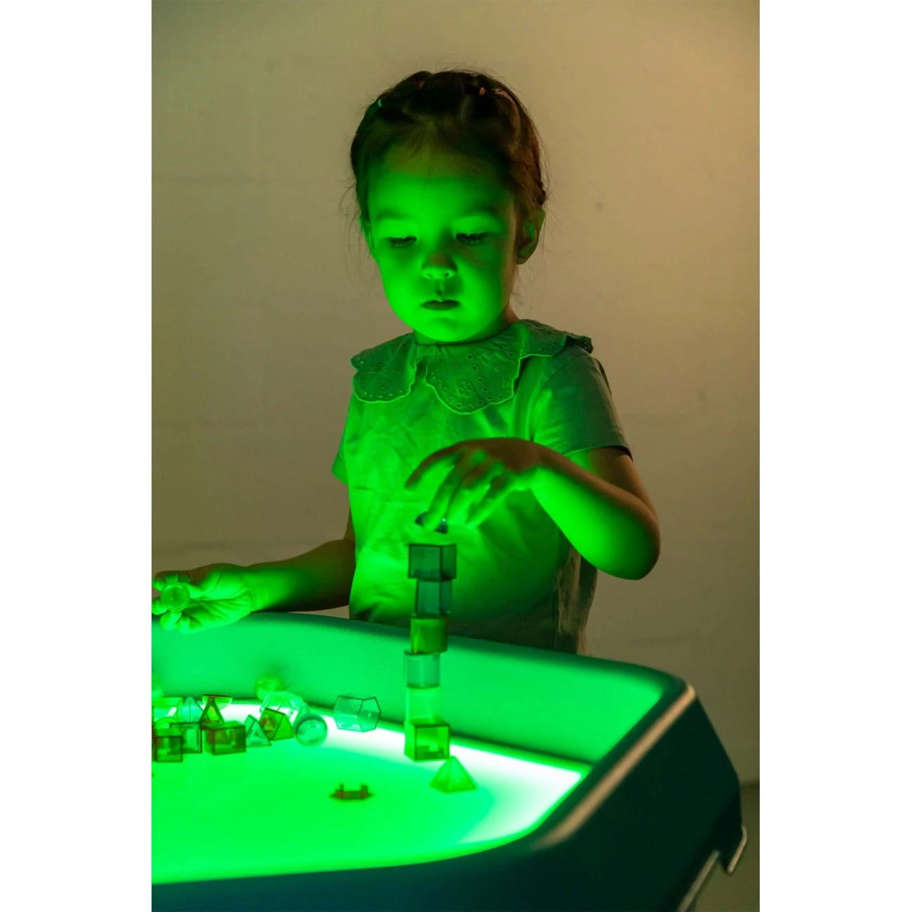 Dzięki temu zestawowi dzieci rozwijają motorykę małą, rozpoznawanie kształtów oraz pojęcia przestrzenne – wszystko to w trakcie radosnej nauki i zabawy. Idealny do stolika świetlnego i doskonały do poznawania świata kształtów i kolorów.