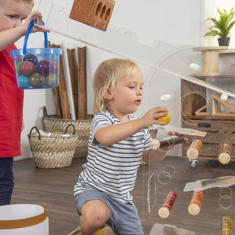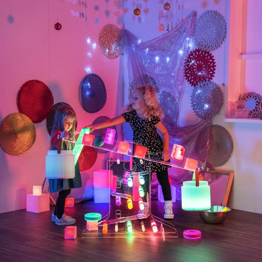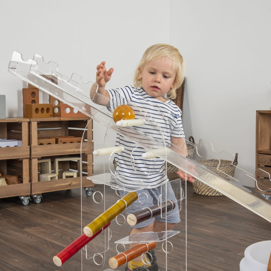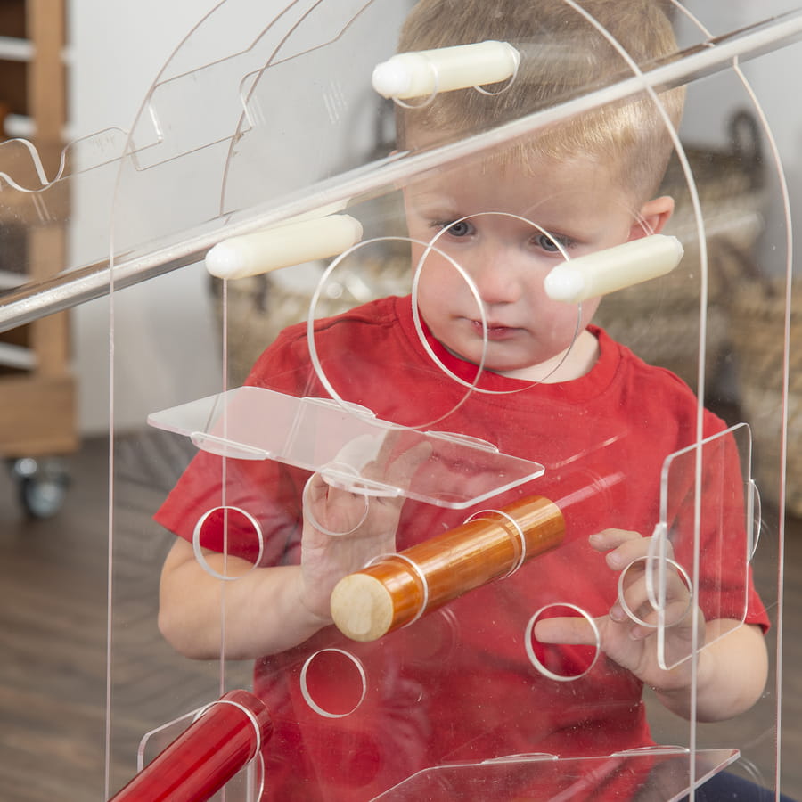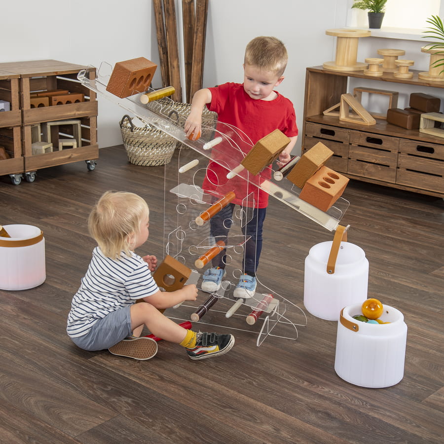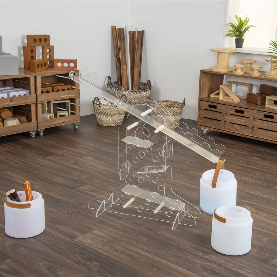 to interaktywna, przezroczysta konstrukcja wspierająca integrację sensoryczną oraz naukę w duchu STEAM (nauka, technologia, inżynieria, sztuka, matematyka). Umożliwia dzieciom eksperymentowanie z równowagą, ruchem i różnymi materiałami, rozwijając koordynację, motorykę i myślenie przyczynowo-skutkowe. Idealne do przestrzeni sensorycznych, sal terapeutycznych i przedszkoli.