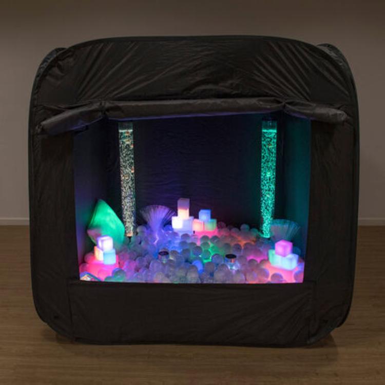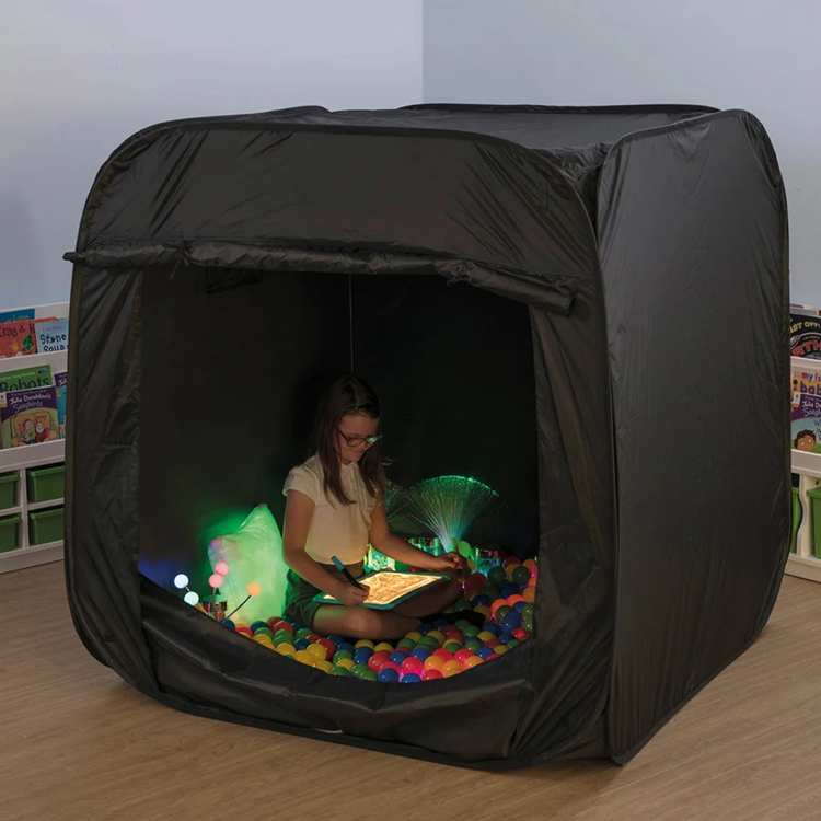 Stwórz idealne miejsce do eksploracji i relaksu sensorycznego dla swojego dziecka, dzięki naszemu namiotowi. Ta wszechstronna przestrzeń edukacyjna błyskawicznie zmienić się może w basen z piłkami sensorycznymi lub kącik do relaksu z świecącymi zabawkami. Wytrzymały, ognioodporny poliester gwarantuje trwałość, a boczne okienko umożliwia łatwą obserwację dziecka. Szerokie wejście i stelaż przylegający do podłogi sprawiają, że produkt jest przyjazny dla użytkowników wózków inwalidzkich, jest łatwy w montażu i przechowywaniu.