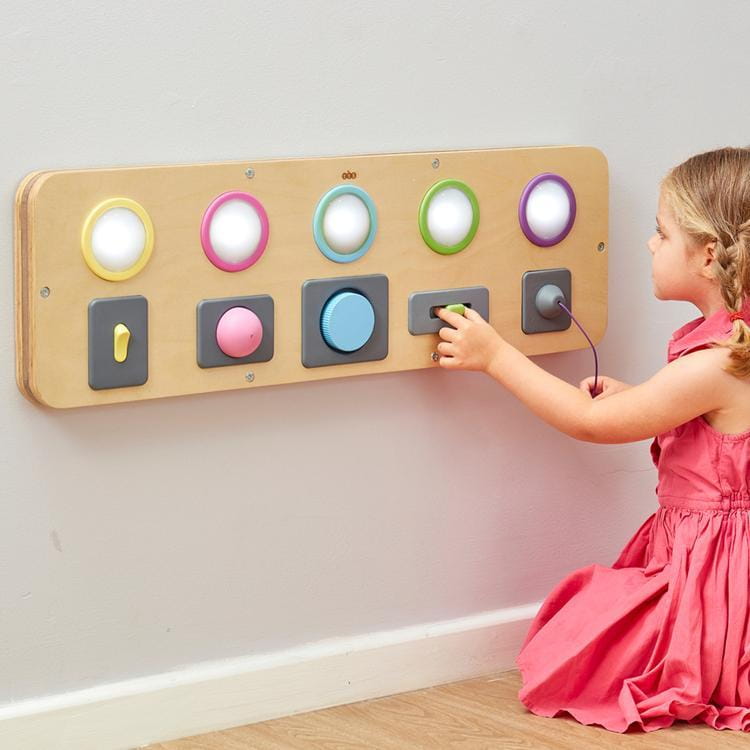 Interaktywna drewniana tablica, która łączy naukę poznawania świata z rozwijaniem małej motoryki poprzez manipulacyjne elementy, takie jak przełączniki, pokrętła i przyciski. Doskonałe narzędzie edukacyjne dla najmłodszych, pozwalające na eksplorację związków przyczynowo- skutkowych oraz mechanizmów sterowania. Dzięki poprawie zdolności manualnych, ułatwia późniejsze pisanie. Można ją używać na stole, podłodze lub montować na ścianie (w zestawie haczyki).