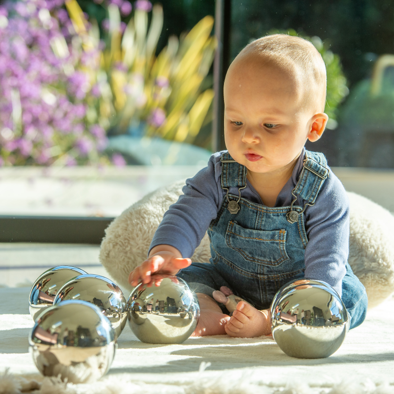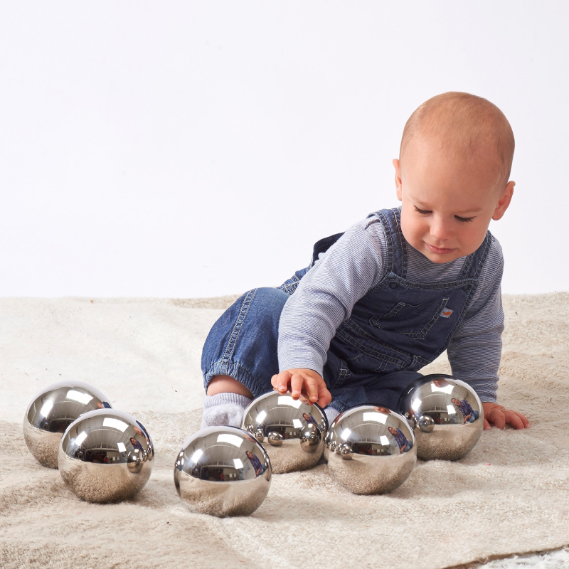 Zestaw lustrzanych kul, które na pozór wyglądają identycznie jednak każda z nich ma inne cechy. Kule mogą chwiać się podczas toczenia, dwie z nich nie wydają dźwięków, ale jedna z nich nie toczy się po linii prostej, inne mają zawartość, która różni się od siebie podczas skręcania, obracania lub potrząsania, a niektóre kule wydają różne dźwięki podczas potrząsania lub grzechotania. Ręcznie wykończona powierzchnia lustra zapewnia zniekształcone odbicie soczewki typu rybie oko, które jest fascynujące dla dzieci. Są lekkie, gładkie i przyjemne w dotyku.