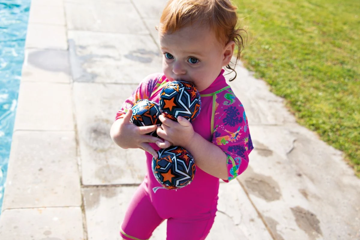 Piłeczki idealnie sprawdzają się jako zabawki basenowe dla dzieci – maluchy mogą ścigać się z rówieśnikami, kto pierwszy je wyłowi z wody, rozwijając przy tym koordynację ruchową i motorykę. To także świetne wsparcie dla dzieci, które po raz pierwszy wybierają się na basen. Wprowadzenie Splash Balls już podczas kąpieli w wannie sprawia, że dziecko trafia na basen z dobrze znanymi zabawkami, co zmniejsza stres i zwiększa komfort.