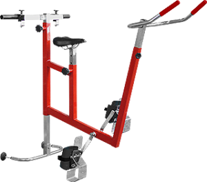 Model zawieszany na krawędzi niecki opracowany zmyślą o klinikach oraz basenach rehabilitacyjnych o głębokości 120-180 cm.Regulowana wysokość zawiesia, siodła i kierownicy (kierownica jest takżeodwracana). Za opór odpowiedzialne są poliwęglanowe łopatki pod pedałami.Konstrukcja wykonana ze stali AISI304. Standardowo rower zawieszany jest naporęczy basenu, jeśli niecka nie posiada poręczy możliwe jest alternatywnemocowanie w plaży obok niecki za rynną przelewową.