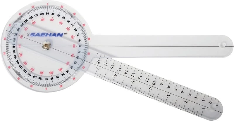 Przezroczyste goniometry plastikowe z podziałką od 0° do 360° co 1°. Przeznaczone do pomiarów zakresów ruchu stawów.Dostępne rozmiary: