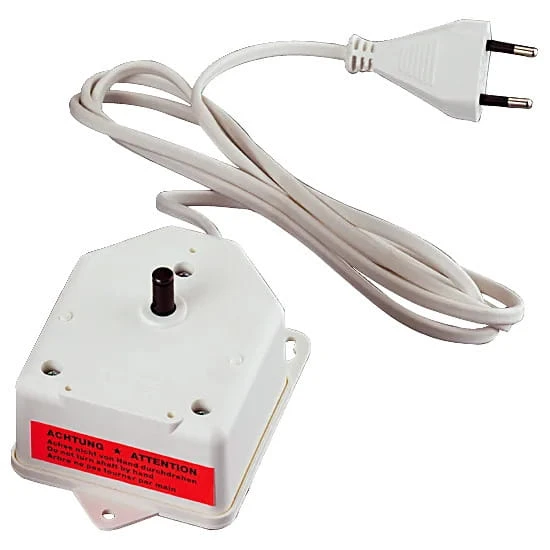 Silnikdo kuli lustrzanej o stałej prędkości 1 obrót na minutę, Idealnydo Sali Doświadczania Świata SNOEZELEN. Silnik posiada wtyczkę dozasilania sieciowego.