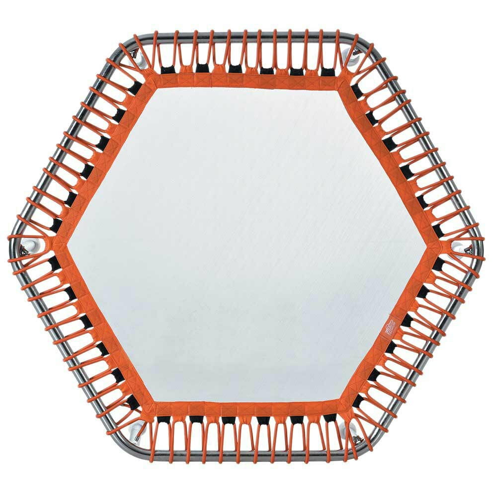 Trampolina wodna może być wykorzystywana do celów rehabilitacyjnych, aquatrainingu lub do zajęć rodzinnych. Mata do skakania o strukturze plastra miodu została stworzona tak, aby zapewnić jak najlepsze odbicie, dzięki płynniejszemu ruchowi wody. Techniczne włókna zapewniają trwałość, przepuszczalność i możliwość korzystania na boso. Gumy naciągające płótno na konstrukcję są od siebie niezależne. Przy tego typu konstrukcji każdą gumkę można łatwo wymienić. Stopy posiadają przyssawki które pod wpływem ciśnienia mocują i stabilizują trampolinę wodną na dnie basenu niezależnie od siły odbicia. Silikonowy materiał przyssawek chroni dno basenu przed ryzykiem pozostawienia śladów. Istnieje możliwość zamontowania dodatkowego uchwytu który jest przedstawiony na zdjęcia i jest dostępny w naszej ofercie jako opcja dodatkowa.