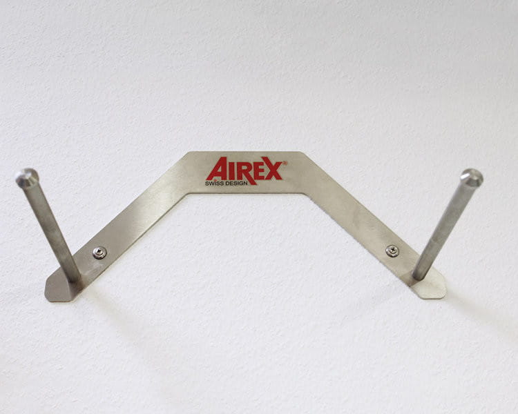 Wykonany z wysokiej jakości stali nierdzewnej wieszak na maty z oczkami, który pozwoli zachować porządek oraz zaoszczędzić miejsce w klubie fitness czy gabinecie rehabilitacyjnym.Wymiary: