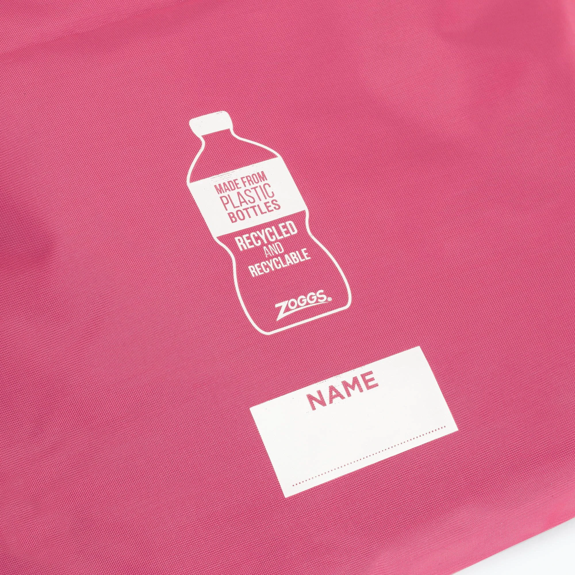 Praktyczny worek na plecy wykonany z materiału z recyklingu butelek. Wygodne ramiączka oraz ściągacz, dodatkową zaletą jest miejsce na podpisanie worka.