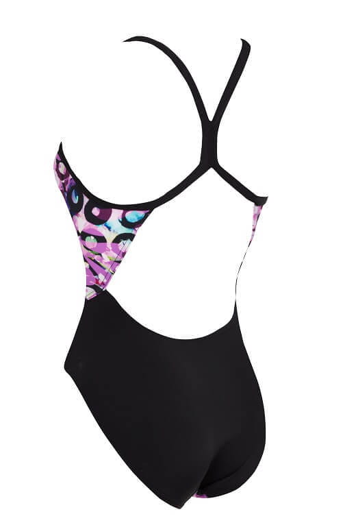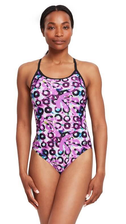 Strój sportowy Zoggs Sprintback to jednoczęściowa propozycja dla aktywnych kobiet. To kostium stworzony do pływania zarówno wyczynowego, jak i rekreacyjnego. Kolorowy nadruk na całej powierzchni zwraca na siebie uwagę. Cienkie ramiączka stabilnie utrzymują kostium na ciele, zapewniając jednocześnie niezbędną swobodę ruchów. W przedniej części wszyto podszewkę, która dodatkowo stabilizuje kostium. Strój jest wykonany z ekologicznej tkaniny, która nie traci barw pod wpływem słońca i chloru. Dzięki temu kostium sprawdzi się w każdych warunkach i będzie idealnie nadawał się na baseny wewnętrzne oraz zewnętrzne.