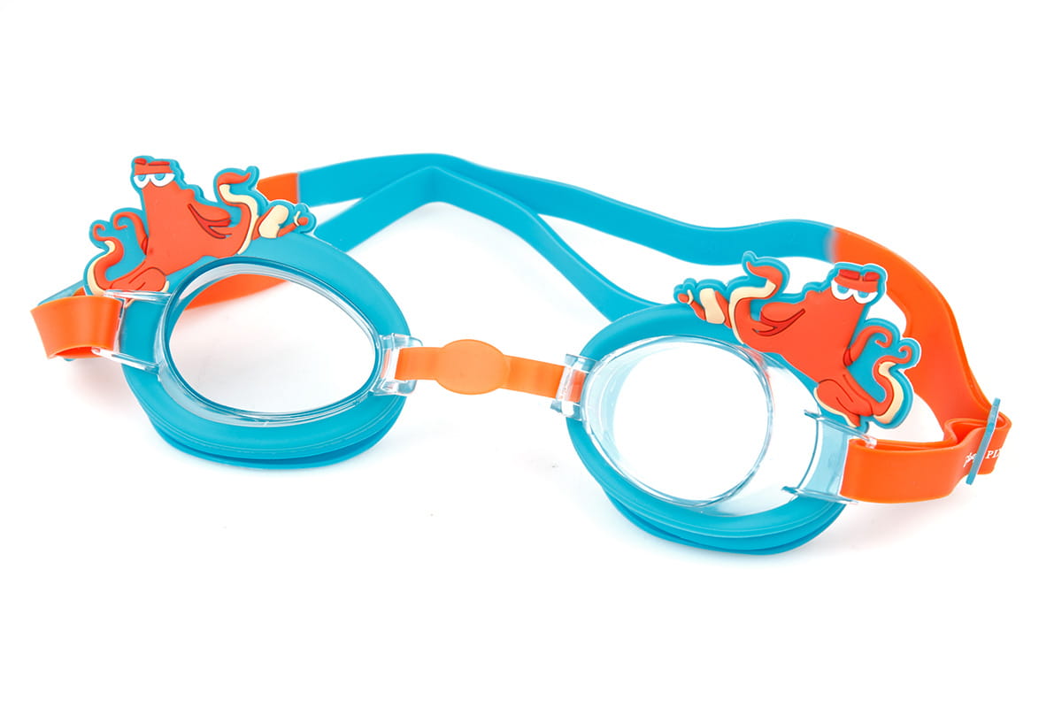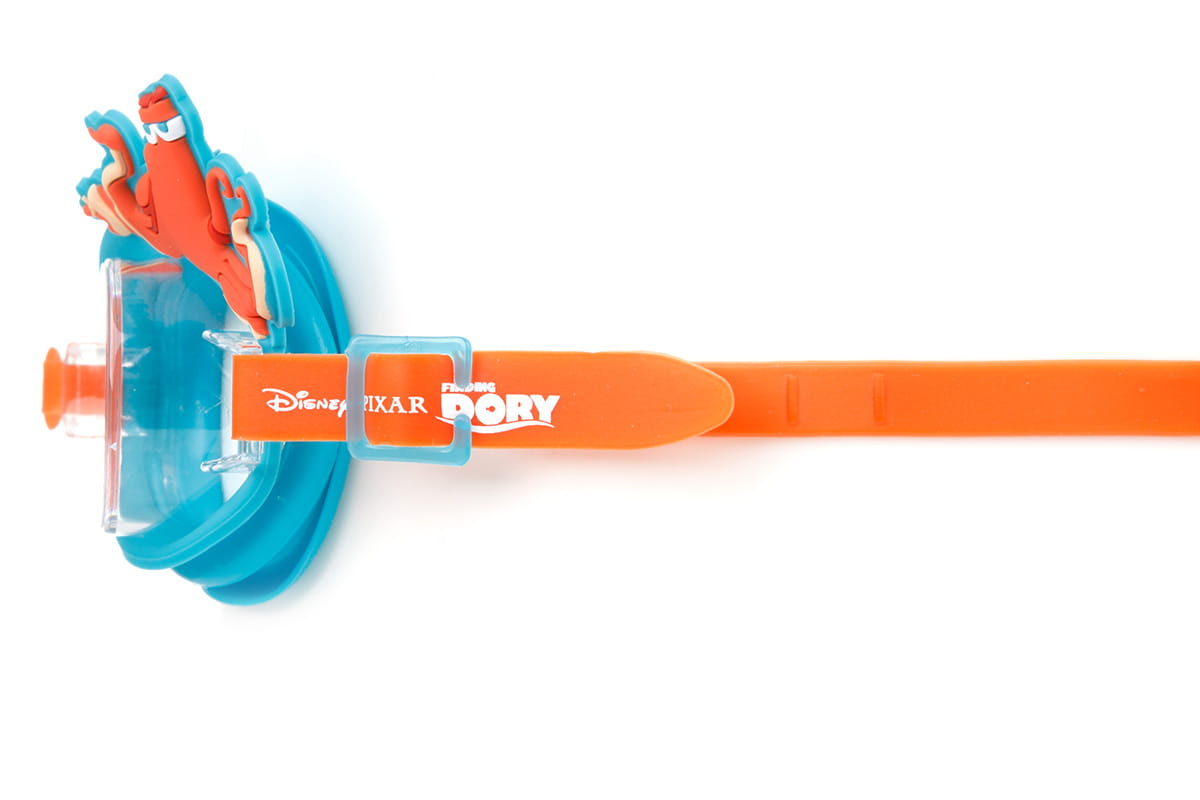 Zanurz się w przygodę z Dory! Nasze gogle z regulacją posiadają motyw z bajki "Gdzie jest Dory?". Produkt jest przeznaczony dla dzieci w wieku do 6 lat. Zapewniają fantastyczny komfort dzięki regulowanemu mostkowi na nos, który umożliwia indywidualne dopasowanie. Super miękka silikonowa oprawka zawiera zabawną postać Hank, co zachęci maluchy do aktywności w wodzie. Przezroczyste soczewki mają ochronę przed promieniowaniem UV i są idealne do pływania w pomieszczeniach. Dzięki temu okulary można używać na lekcjach pływania. Do regulacji służy system regulacji suwaka i wytrzymały dzielony pasek na karku.