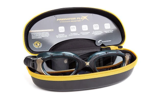 Gogle pływackie Zoggs Predator Flex Titanium Reactor to okulary z elastycznymi oprawkami gwarantującymi idealne dopasowanie oraz komfort użytkowania. Uszczelki Advanced Ultra-Fit™ zapewniaja niezrównaną jakość przylegania do oczodołu. Atutem okularów Predator Reactor są soczewki fotochromatyczne reagujące na promienie słoneczne, dostosowując odcień do warunków. To gwarancja przejrzystości w basenie krytym oraz ochrona przed promieniami słonecznymi na wodach otwartych Idealne do treningów na zewnątrz i wewnątrz. Soczewki posiadają ochronę przed parowaniem Anti-Fog oraz filtr UV. Produkt posiada akceptację FINA i jest najczęściej wybieranym rodzajem okularów triathlonowych spośród wszystkich Predatorów.